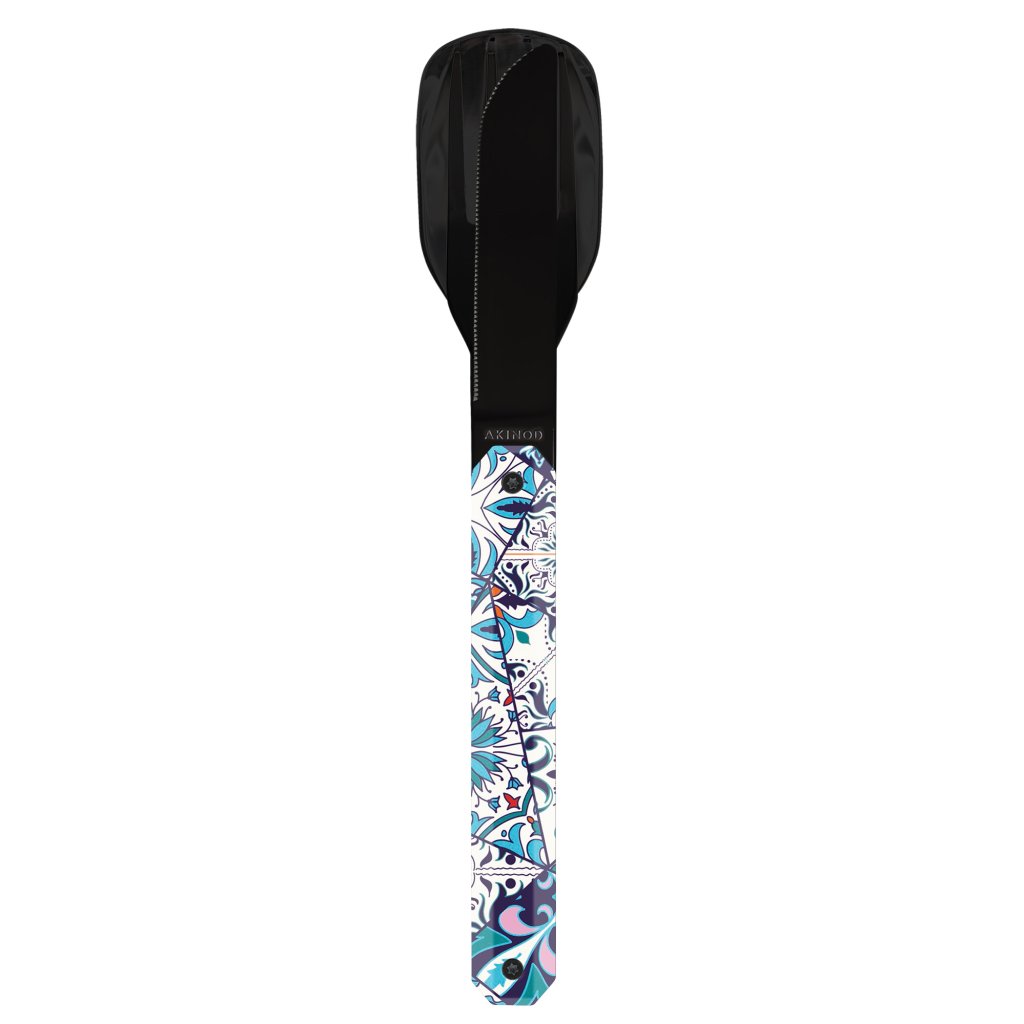 Stylový kapesní příborový set Akinod je novinkou pro milovníky domácího jídla mimo domácí jídelnu. V cestovním úsporném provedení se skrývá "plnohodnotný" příbor: lžíce, vidlička a jemně zoubkovaný nůž. Díky magnetům snadno složíte jednotlivé kusy příbory do jednoho a spojení drží opravdu spolehlivě. Prémiová nerezová ocel odolává i nepříznivému počasí či potravinovým kyselinám. Kapesní příbor je určený pro městský styl života a glamping (stylové kempování). Příbor je také super dárek pro každého, kdo má rád nový nápaditý design a skvělé jídlo. Vyberte si z mnoha rozmanitých designů na míru ženskému i mužskému elementu.