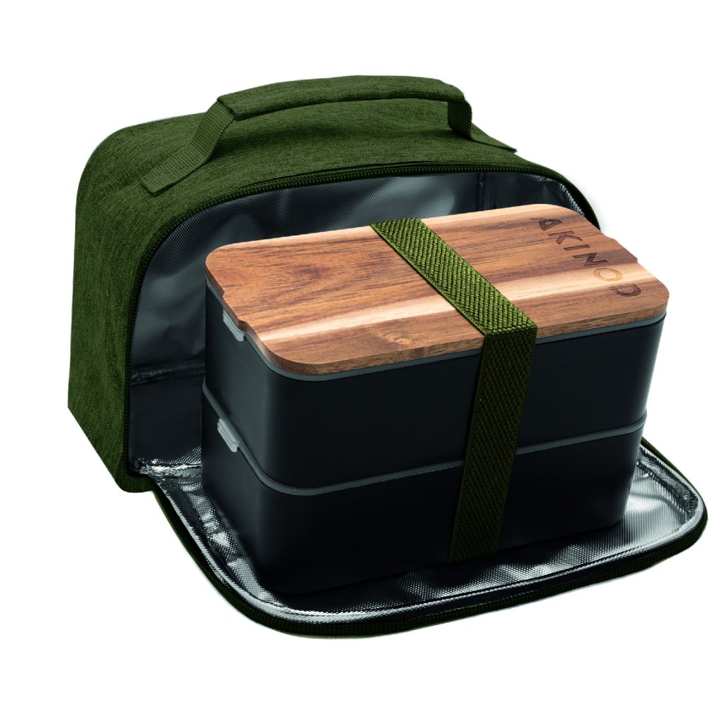 Svačinový box / lunch box Akinod černý s izolační taškou v barvě khaki