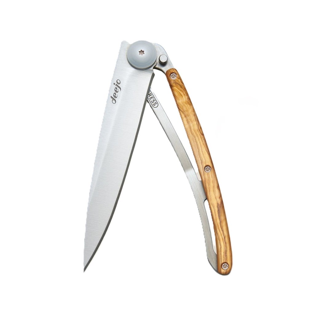 Stylový ultralehký nůž Deejo se střenkou z olivového dřeva.