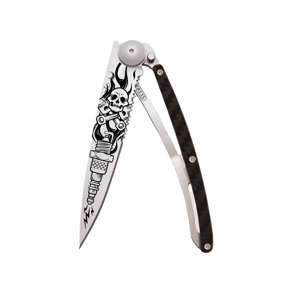 Kapesní nůž Deejo Tattoo Serration 37g titan Biker carbon fiber