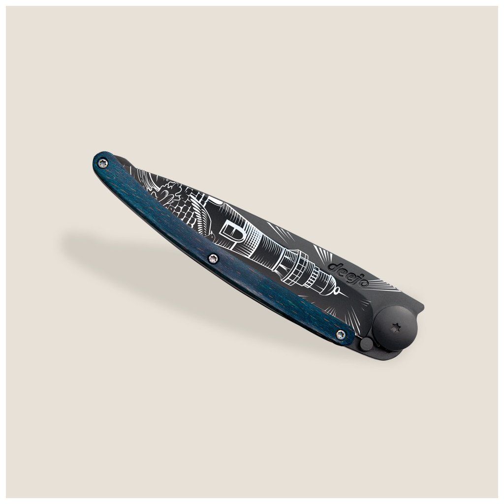 Kapesní nůž Deejo Tattoo Black 37g Lighthouse blue beech
