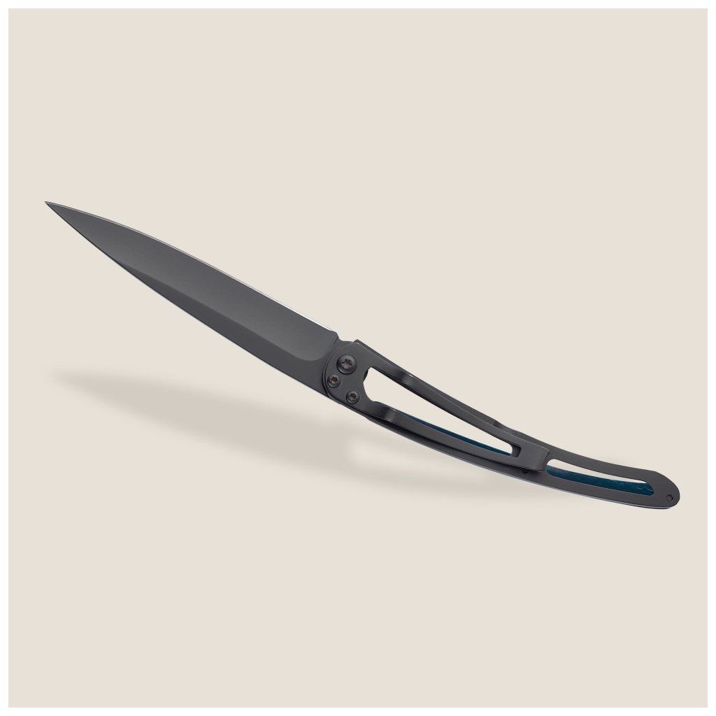 Matná čepel s černou titanovou úpravou. Pro zachování ostrosti používejte k dobrušování kapesní brousek deejo.