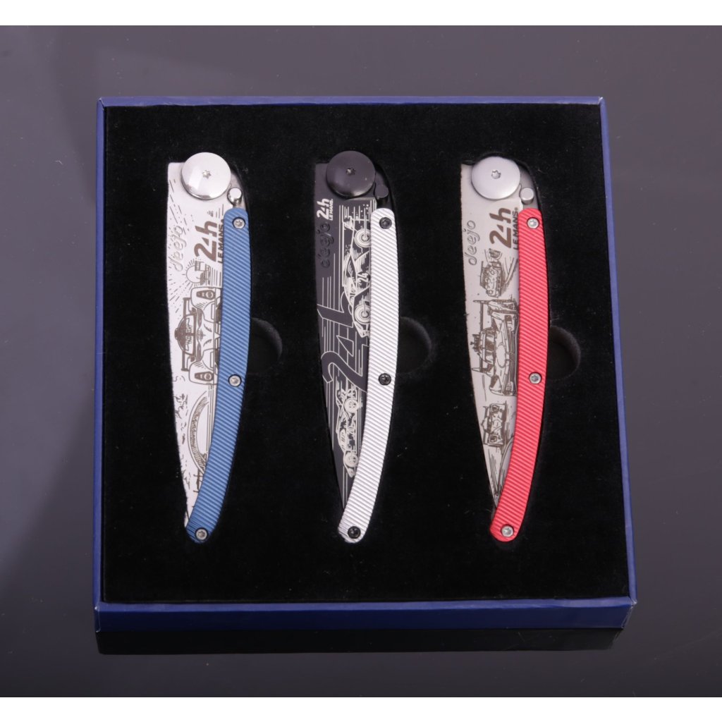 Sada 3 kapesních nožů s motivem 24 Le Mans, ideální jako dárek. Limitovaná edice.