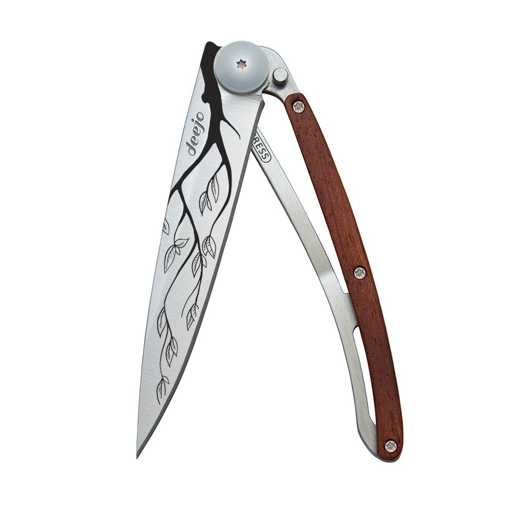 Stylový ultralehký nůž Deejo se střenkou z exotického dřeva coralwood a motivem "větev".