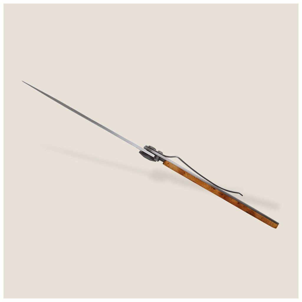 Dřevěná střenka z kořene exotického jalovce vyniká svou trvalou a pronikavou pepřovou vůní. Jalovcové vonné dřevo je odolné, lehké a pevné. Jemná kresba světlého dřeva na jednotlivých nožích variuje, každý nůž je tedy originál.