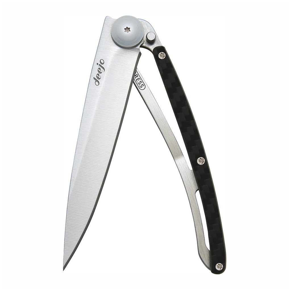 Stylový ultralehký nůž Deejo se střenkou z karbonu.