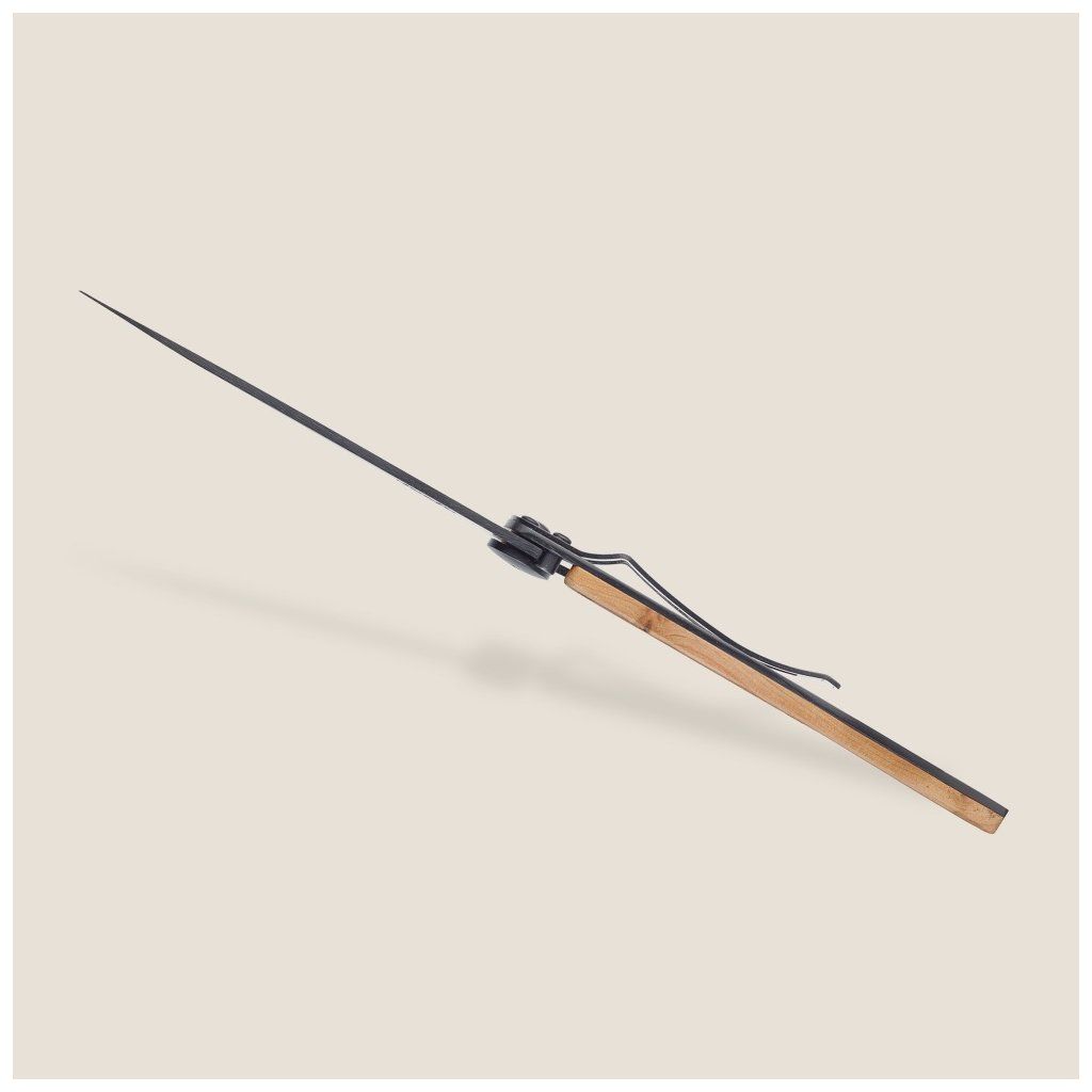 Dřevěná střenka z kořene exotického jalovce vyniká svou trvalou a pronikavou pepřovou vůní. Jalovcové vonné dřevo je odolné, lehké a pevné. Jemná kresba světlého dřeva na jednotlivých nožích variuje, každý nůž je tedy originál.
