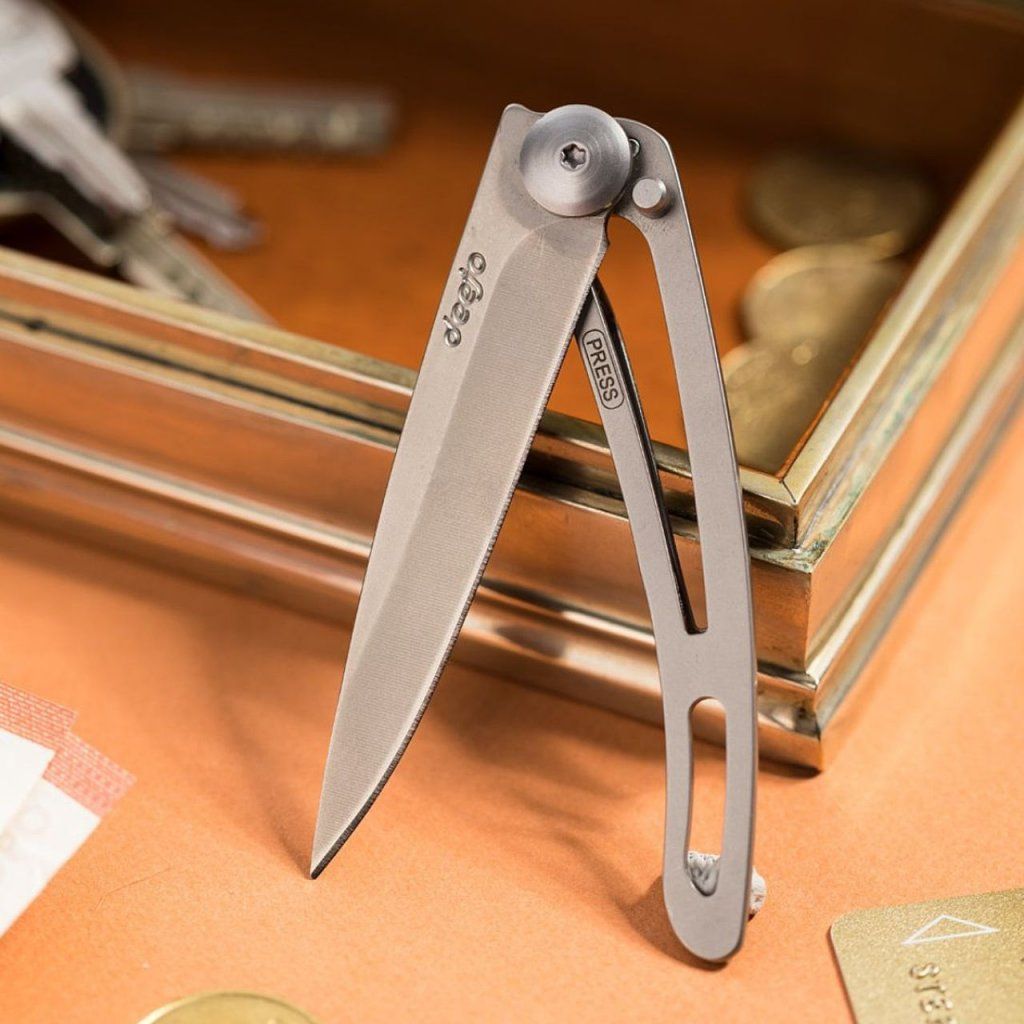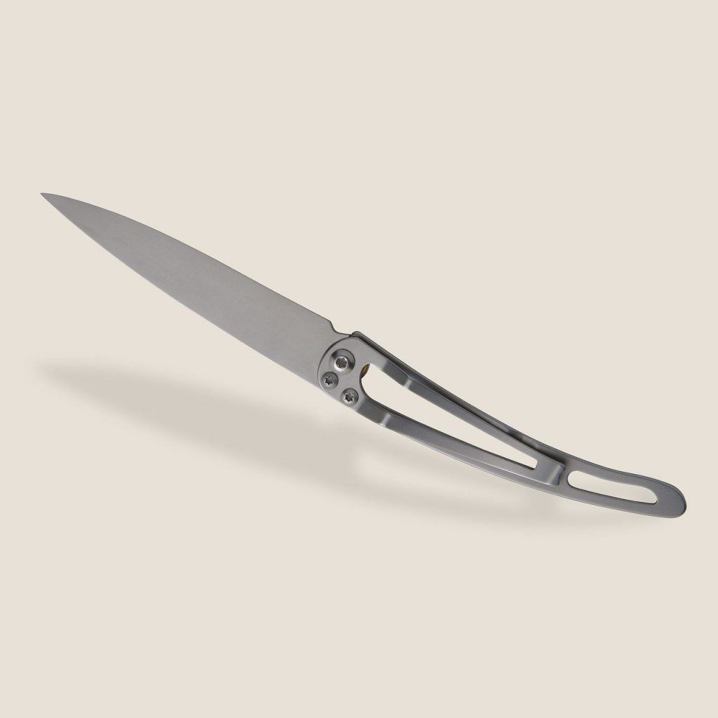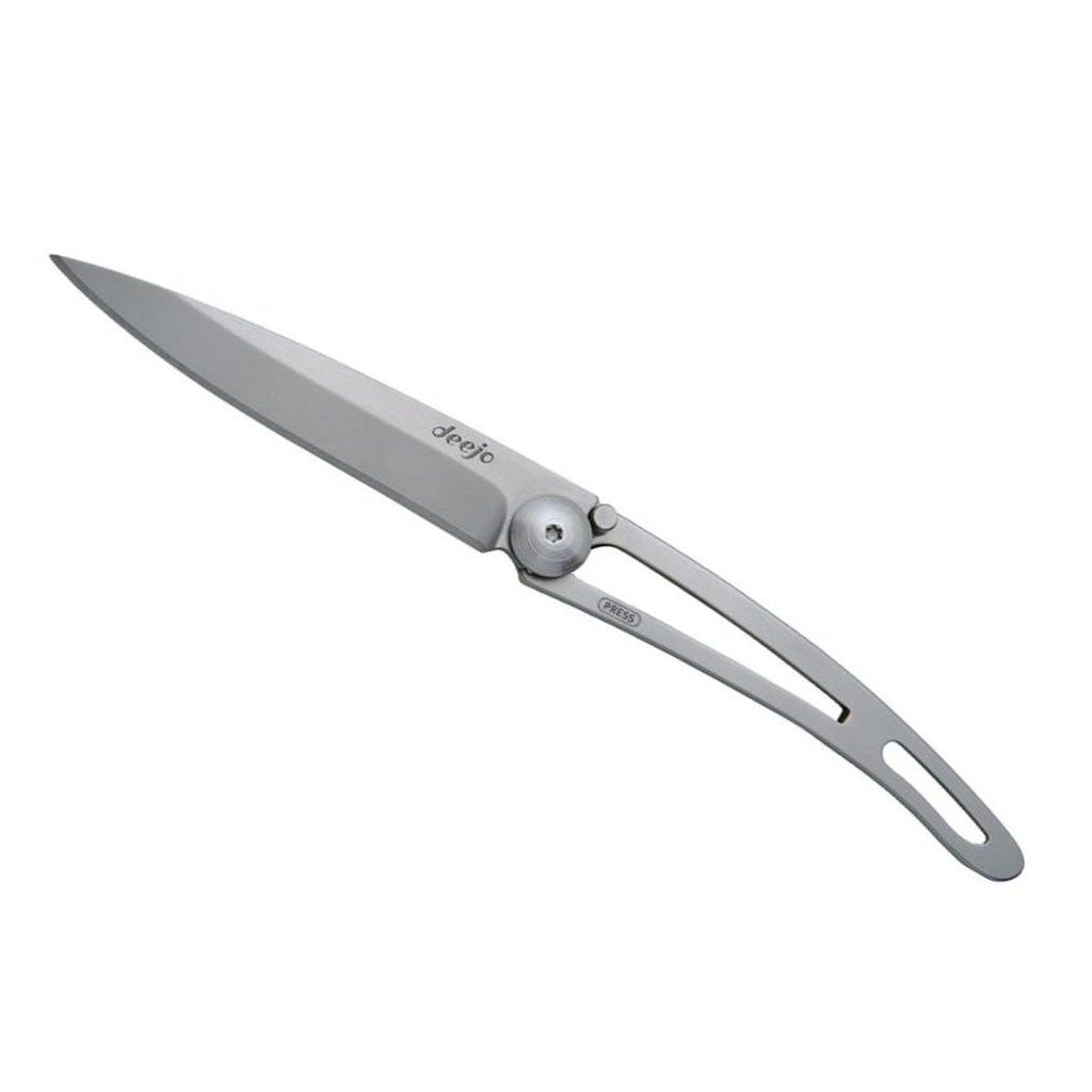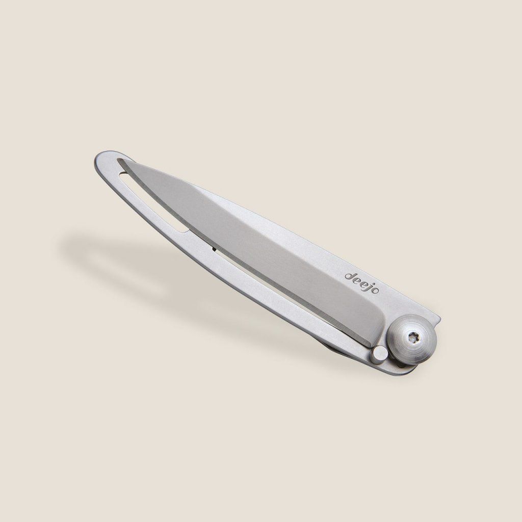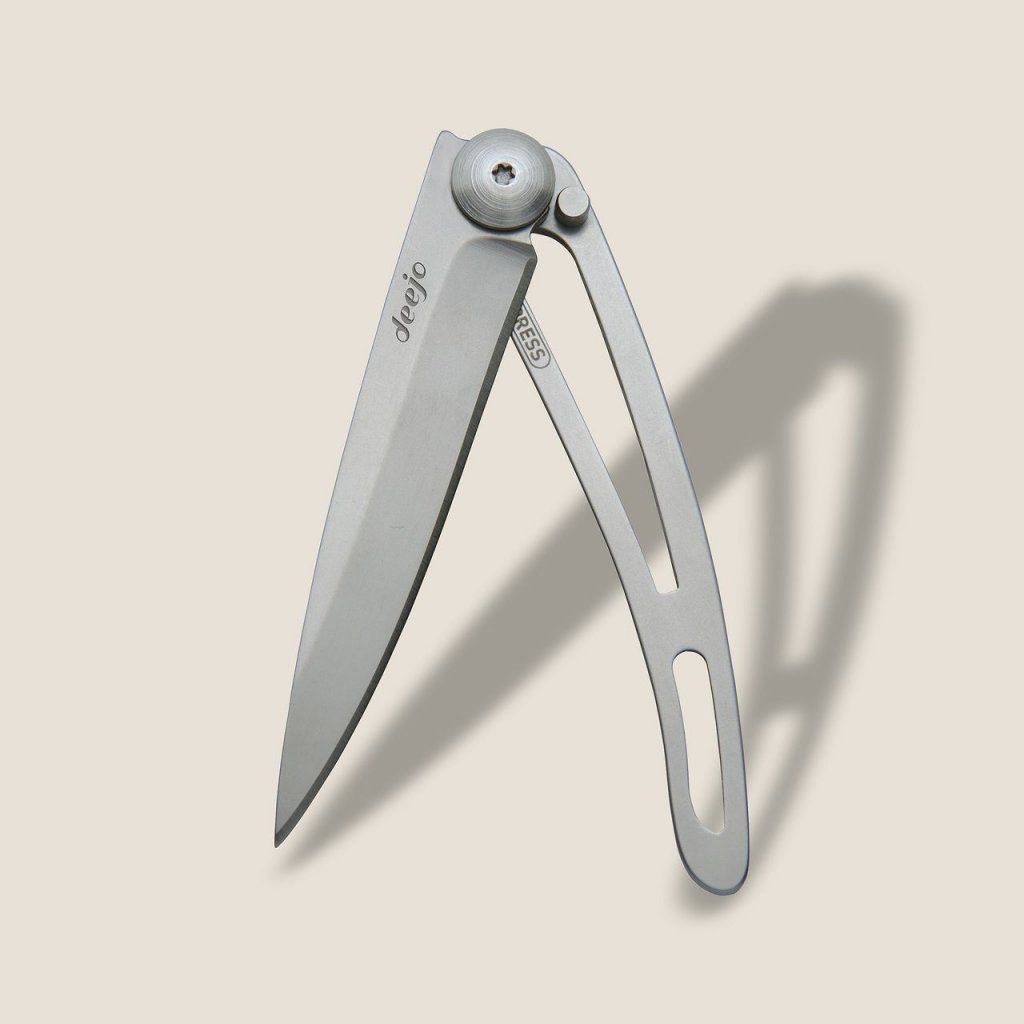Stylový ultralehký nůž Deejo ze série Naked v prostřední velikosti o hmotnosti 27 gramů.