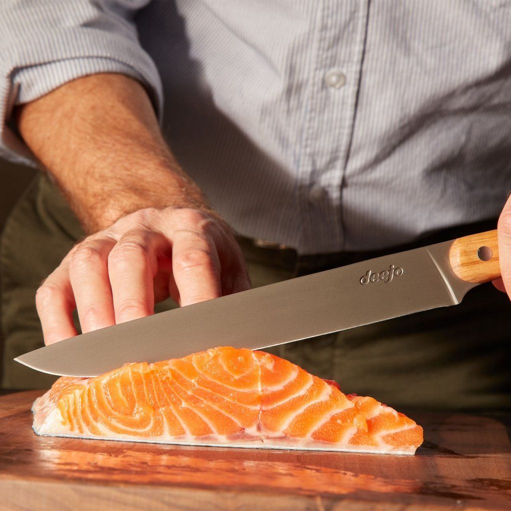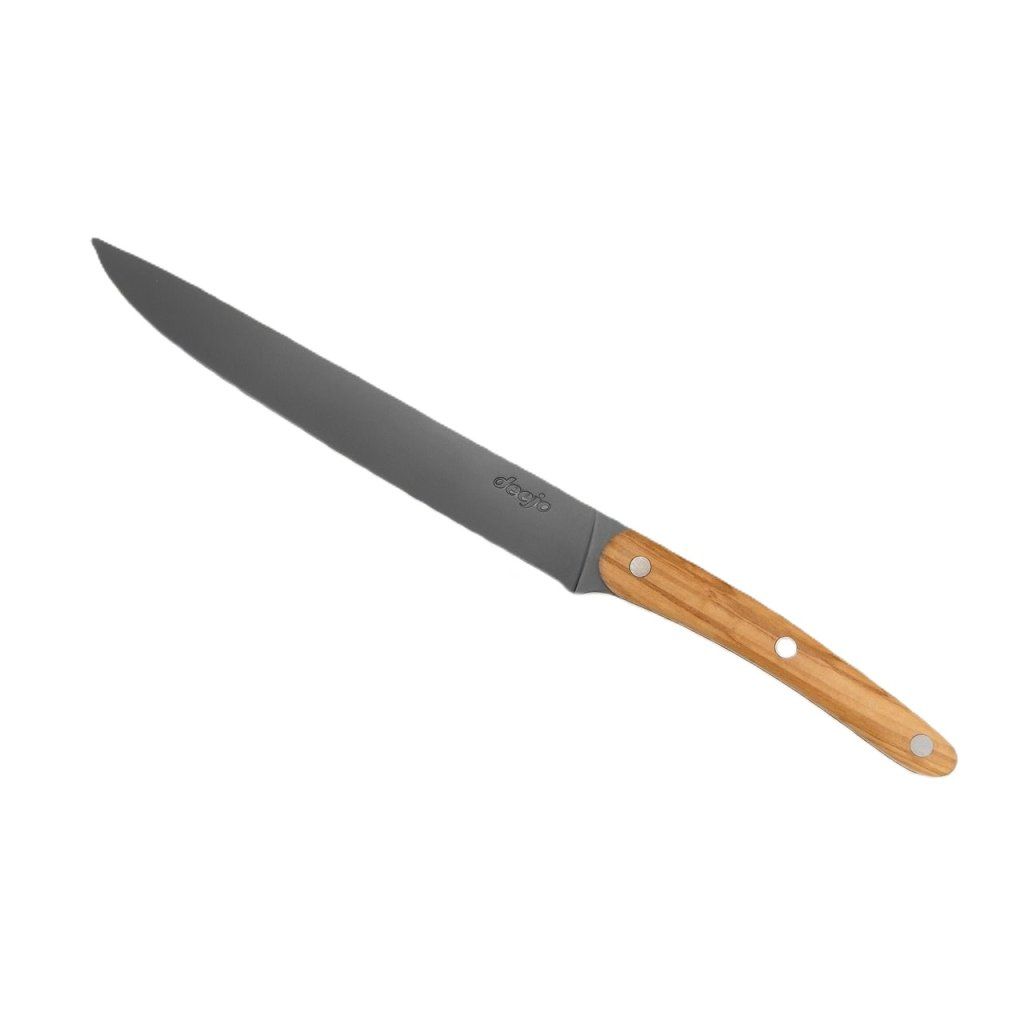 Porcovací nůž Deejo KFBTR0011 s rukojetí z olivového dřeva je prémiový kuchyňský nástroj určený pro všechny, kteří hledají dokonalou souhru profesionální funkce a čistého, puristického designu. Tento francouzský krájecí nůž sází na minimalismus a absenci tetování, čímž dává naplno vyniknout elegantnímu kontrastu mezi temným titanovým ostřím a hřejivou texturou masivního dřeva. Dodává se ve stylové dárkové krabičce a je skvělým doplňkem pro každodenní mistrovské vaření.