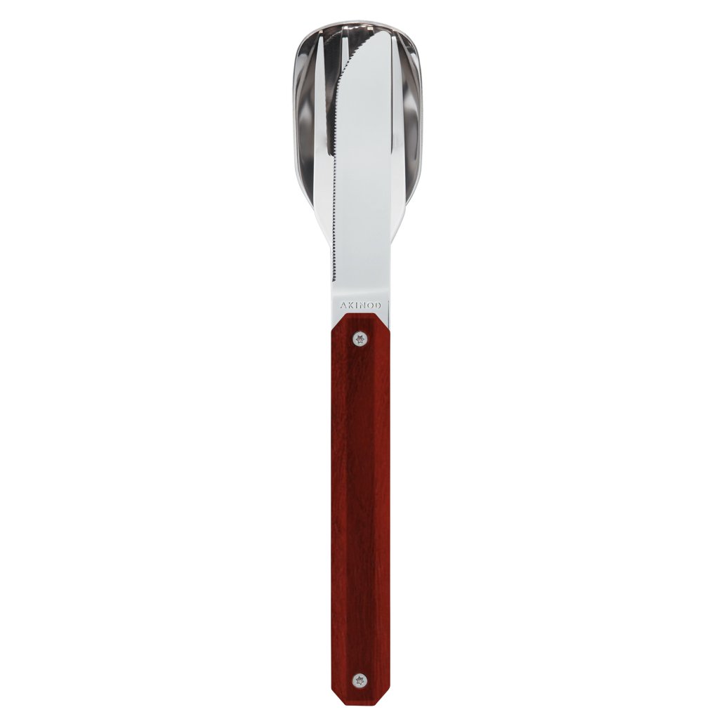 Stylový kapesní příborový set Akinod z řady 12H34 je novinkou pro milovníky domácího jídla mimo domácí jídelnu. V cestovním úsporném provedení se skrývá "plnohodnotný" příbor: lžíce, vidlička a jemně zoubkovaný nůž. Díky magnetům snadno složíte jednotlivé kusy příbory do jednoho a spojení drží opravdu spolehlivě. Prémiová nerezová ocel odolává i nepříznivému počasí či potravinovým kyselinám. Kapesní příbor je určený pro městský styl života a glamping (stylové kempování). Příbor je také super dárek pro každého, kdo má rád nový nápaditý design a skvělé jídlo. Vyberte si z mnoha rozmanitých designů na míru ženskému i mužskému elementu.