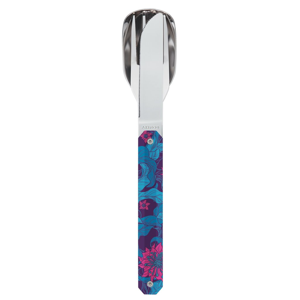 Stylový kapesní příborový set Akinod je novinkou pro milovníky domácího jídla mimo domácí jídelnu. V cestovním úsporném provedení se skrývá "plnohodnotný" příbor: lžíce, vidlička a jemně zoubkovaný nůž. Díky magnetům snadno složíte jednotlivé kusy příbory do jednoho a spojení drží opravdu spolehlivě. Prémiová nerezová ocel odolává i nepříznivému počasí či potravinovým kyselinám. Kapesní příbor je určený pro městský styl života a glamping (stylové kempování). Příbor je také super dárek pro každého, kdo má rád nový nápaditý design a skvělé jídlo. Vyberte si z mnoha rozmanitých designů na míru ženskému i mužskému elementu.