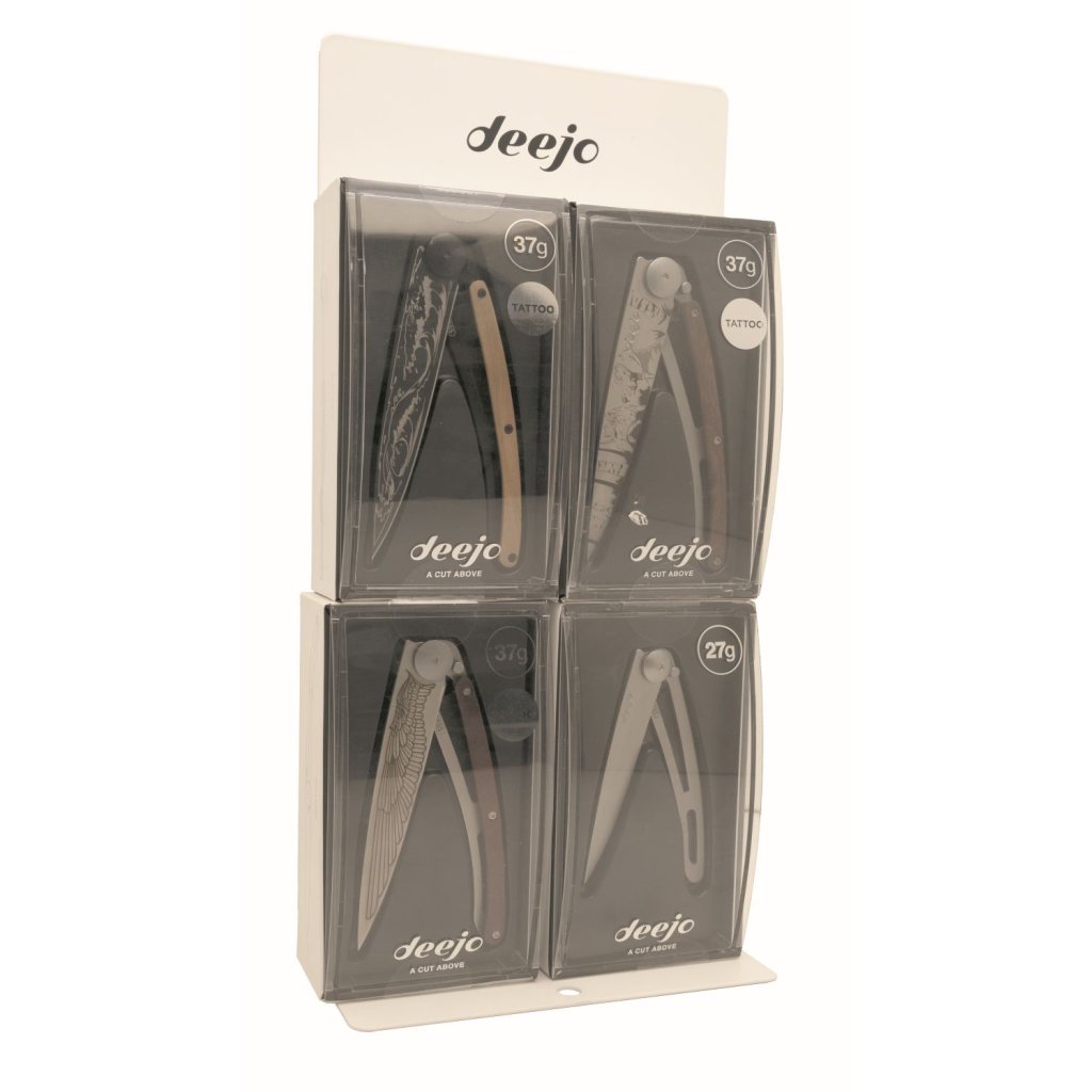 Kovový stojan DEE231 na 4ks kapesních nožů Deejo v prodejním obalu