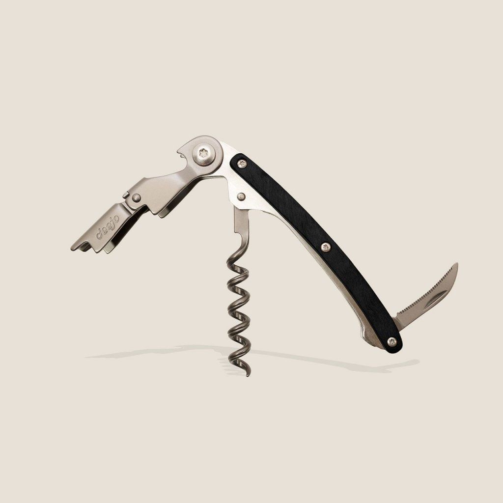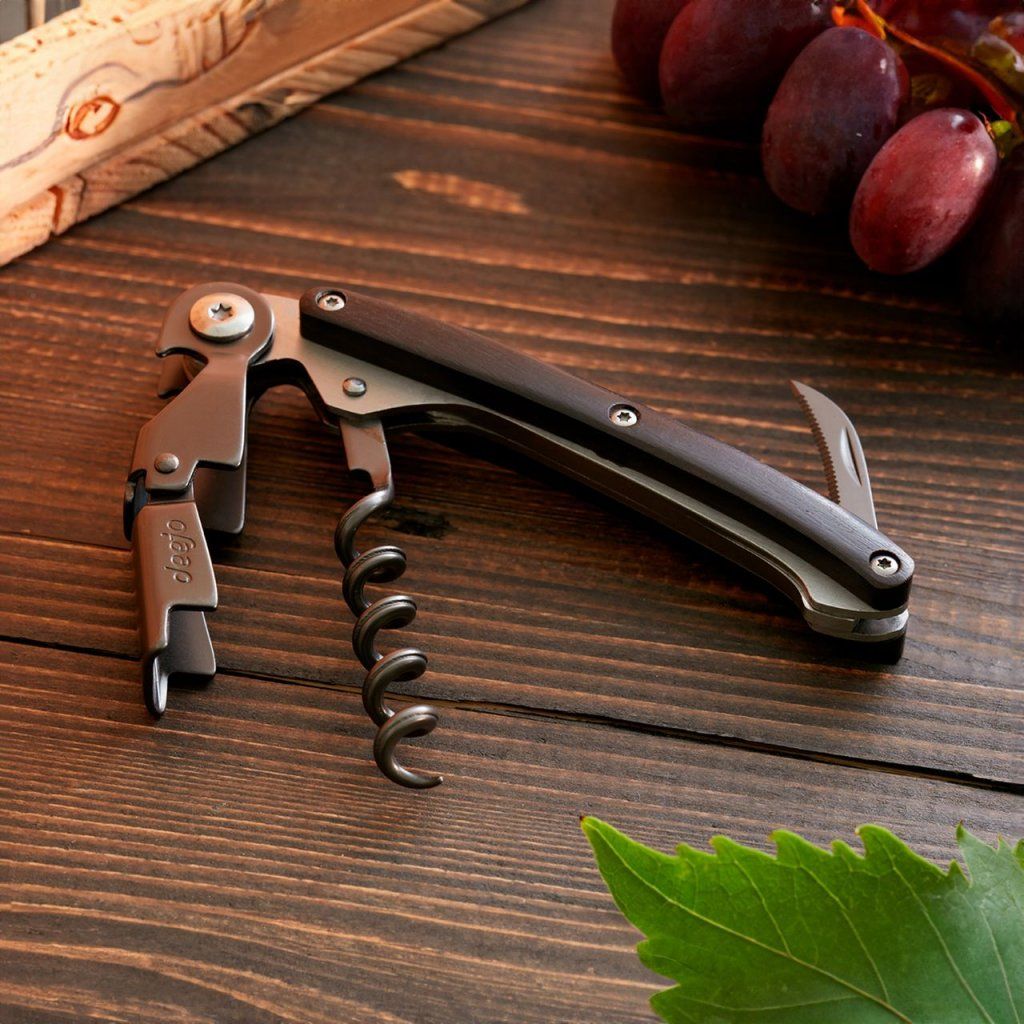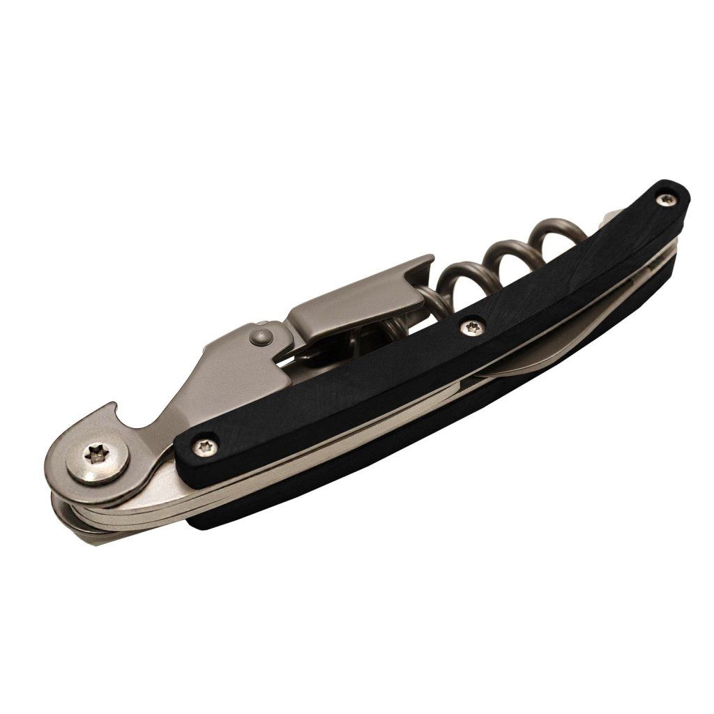 Luxusně pojatý sommelierský nástroj s vývrtkou, dvoustupňovým otvírákem a nožíkem.