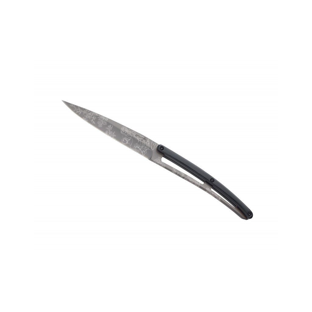 Stolní nože v jedinečném luxusním designu. Štíhlá silueta nože, jemná střenka umístěná v horní části nože umožňuje pohodlný úchop. Steakové nože deejo najdete v mnoha variacích, ať už jde o povrchovou úpravu, typ ostří, materiál střenky nebo motiv tetování. Skvělá sada nožů je dokonalým dárkem, kromě konzumace steaků využijete nože i pro stylové prostření rodinné večeře nebo oslavy s přáteli – sada obsahuje hned 6 ostrých nožů. Baleno v dárkové kartonové krabičce, kterou využijete i pro bezpečné uložení mezi používáním.